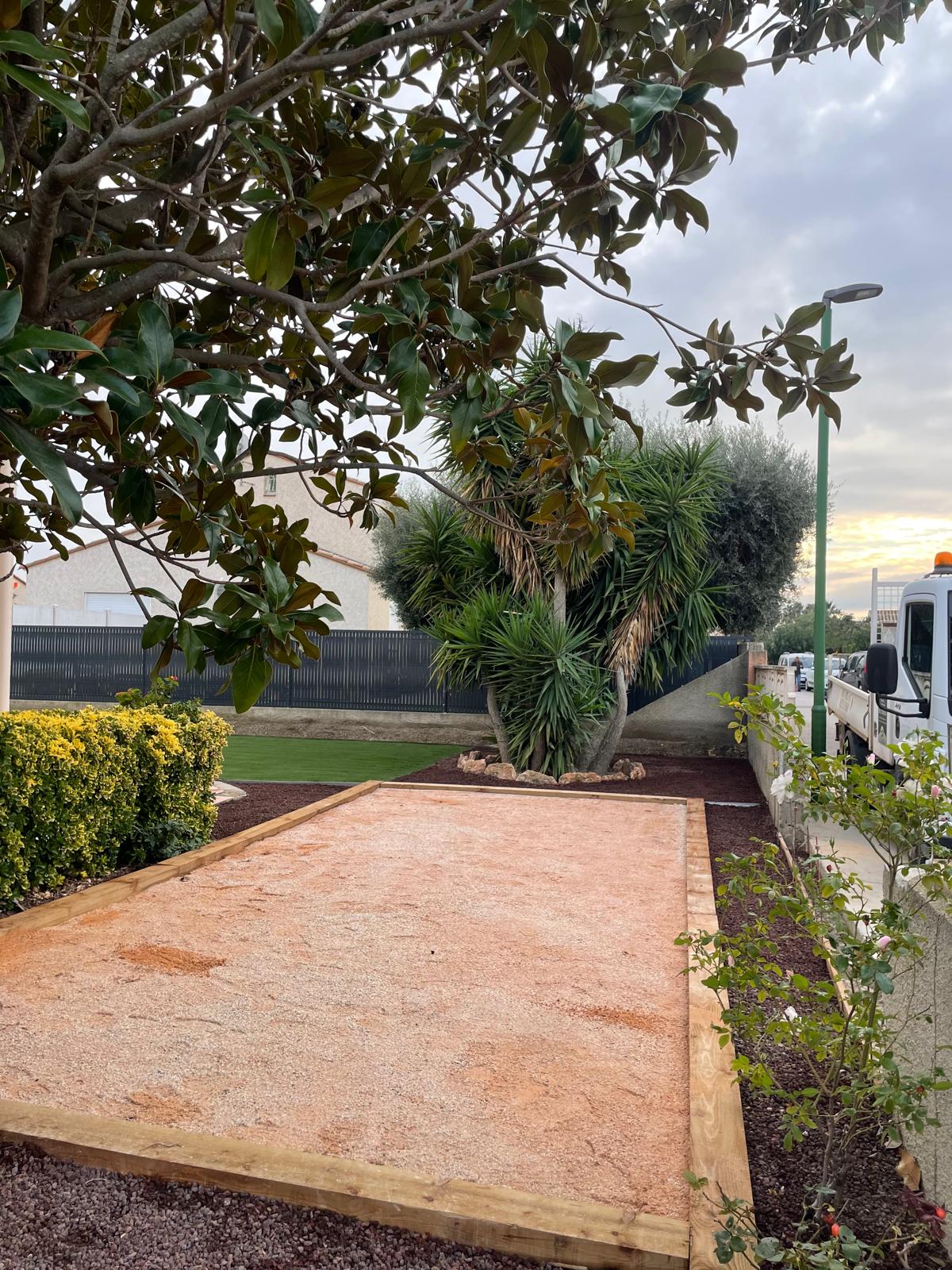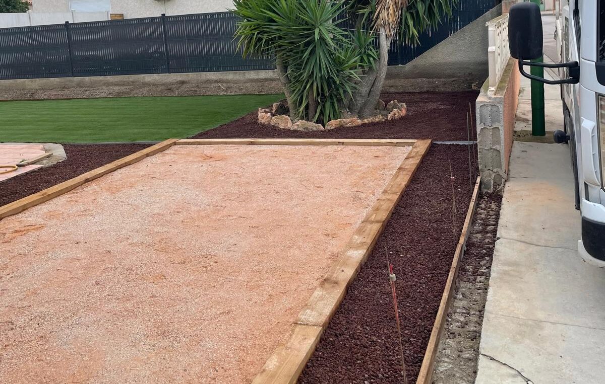 Apportez convivialité et plaisir à votre extérieur : nous réalisons des terrains de pétanque personnalisés, stables et esthétiques, parfaits pour les moments de détente entre amis ou en famille.
